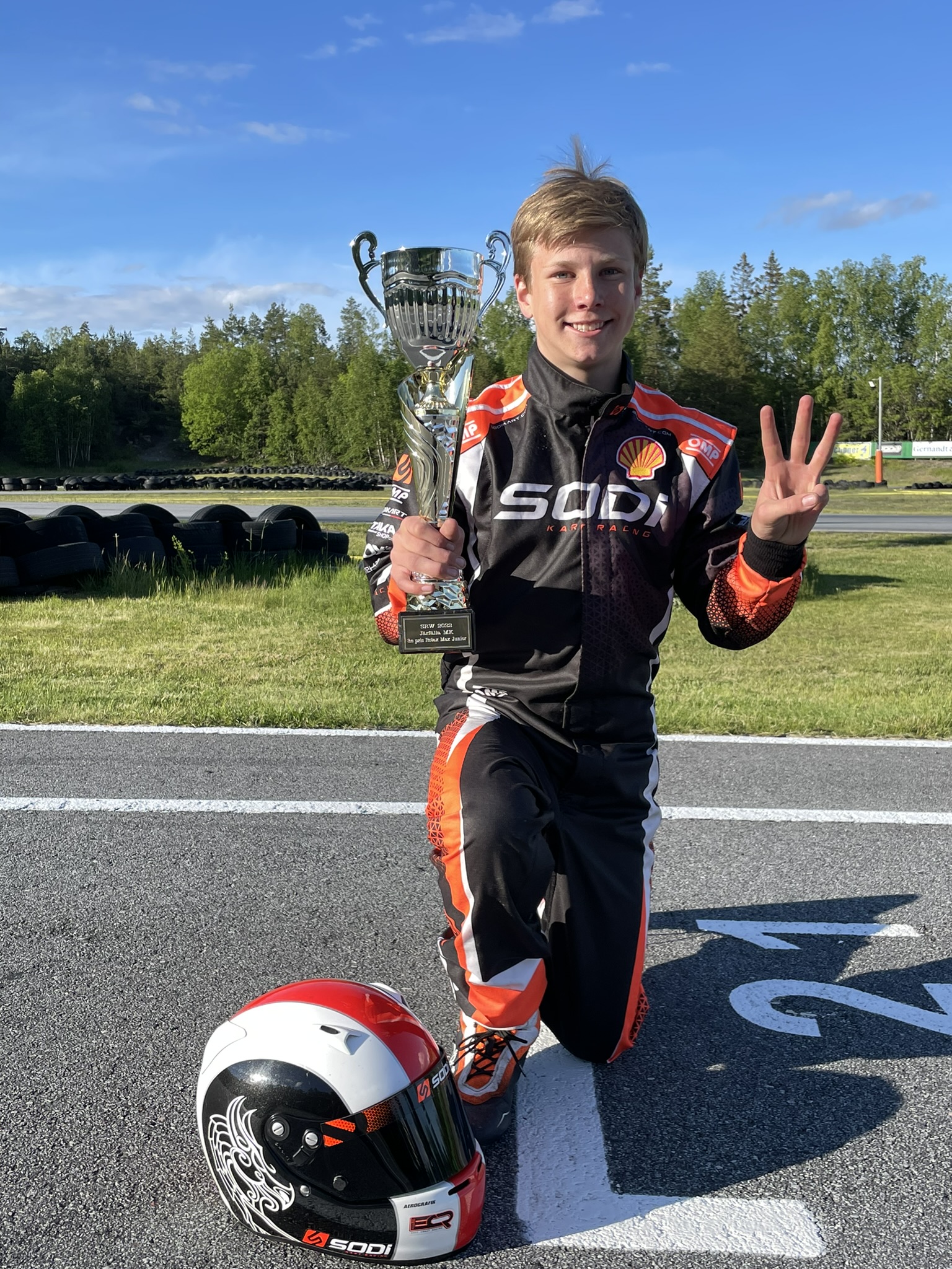 In April of 2020 I did my first karting race at Järfälla MK north of Stockholm in a Formula Mini Raket 95. They put me on the top of the podium after that race and that was the best feeling in the world!